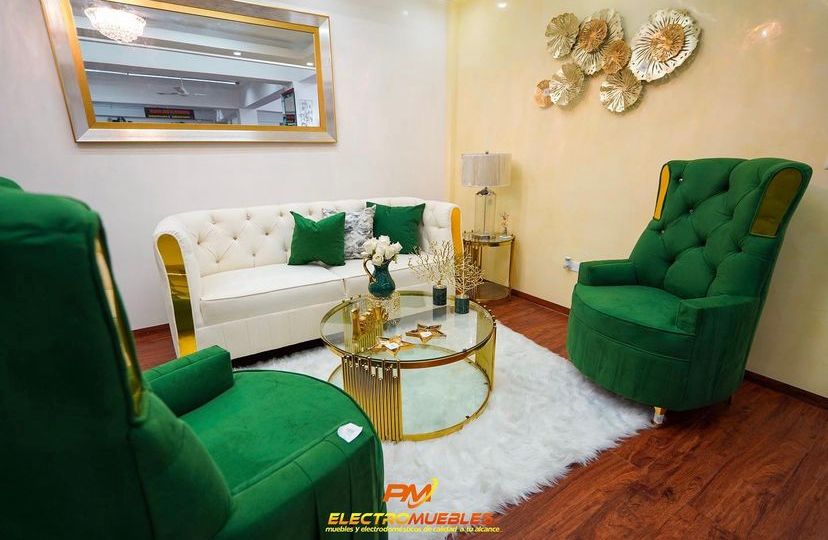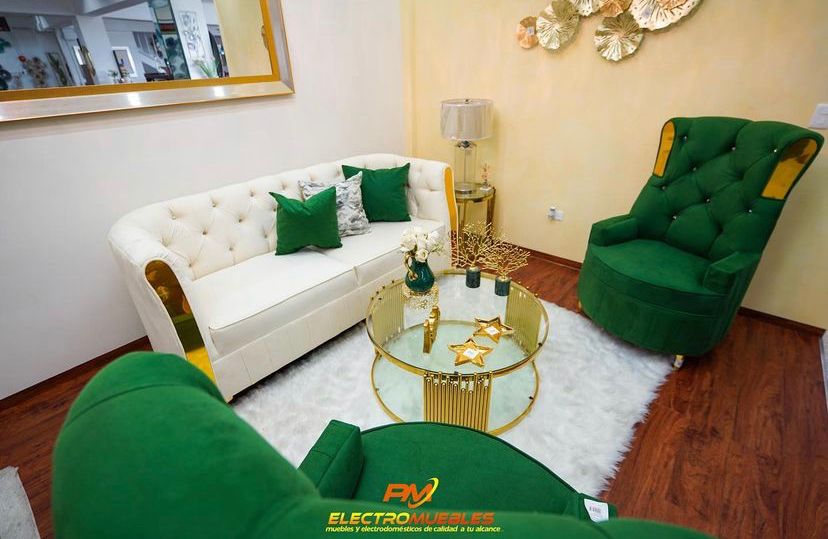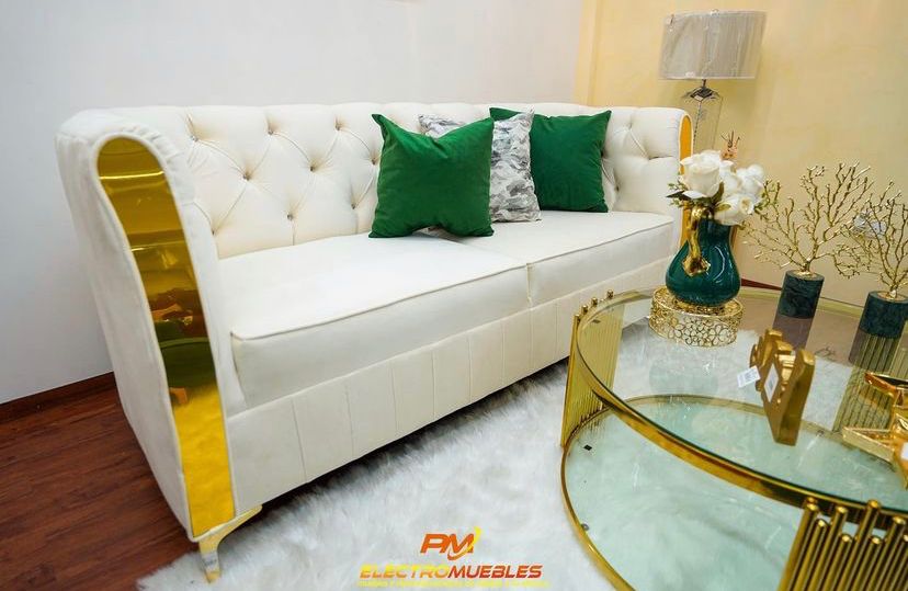 Juego de sala moderno disponible en un sofá de 3 asientos más 2 butacas.